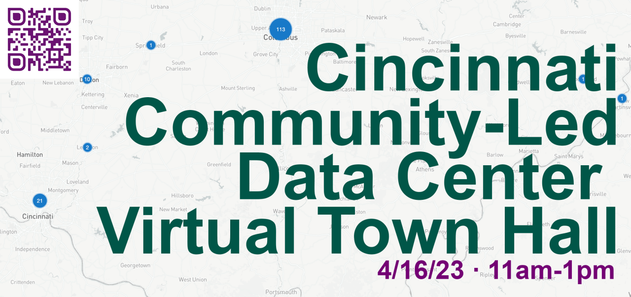 Cincinnati Community-Led Data Center Virtual Town Hall — Data centers are a hot topic in Cincinnati and across Ohio. This community-led data center virtual town hall is a dedicated safe space for all in the community to join in the conversation: RSVP today.