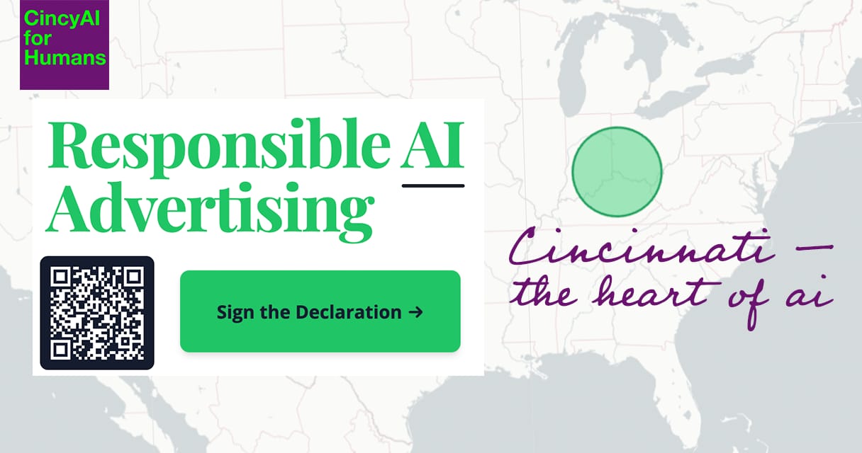 Sign the Responsible AI Advertising Pledge Today! — Help shape the evolution of adveritsing with A.I. The goal is to get enough signatures and participants for a convening, a mix of in-person and virtual, during Cincy AI Week this June 9-11, to discuss the future of A.I. advertising standards. Add your signature: https://responsibleaiadv.com/
