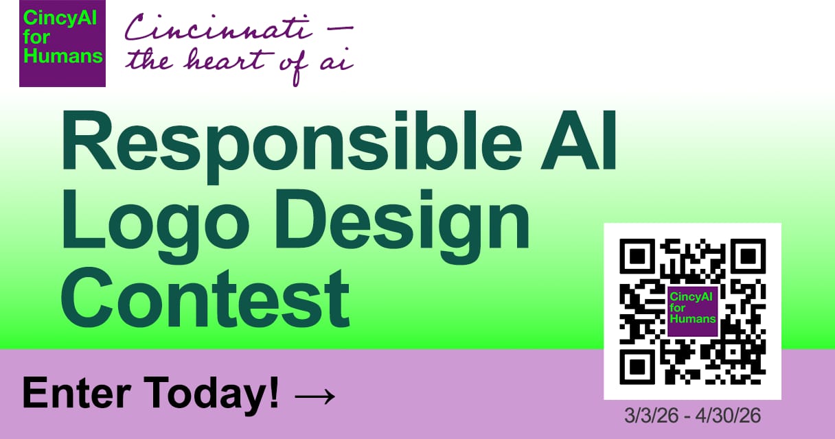 Responsible AI Logo Design Contest — CincyAI for Humans, the largest AI community in Ohio and the Greater Cincinnati Tri-State region, is launching a logo that certifies responsible, human-centered AI in the region — and we want you to be part of it! Enter your slogan today: https://www.madeincincinnati.co/ We’re going to vote on the slogan at our next meetup!