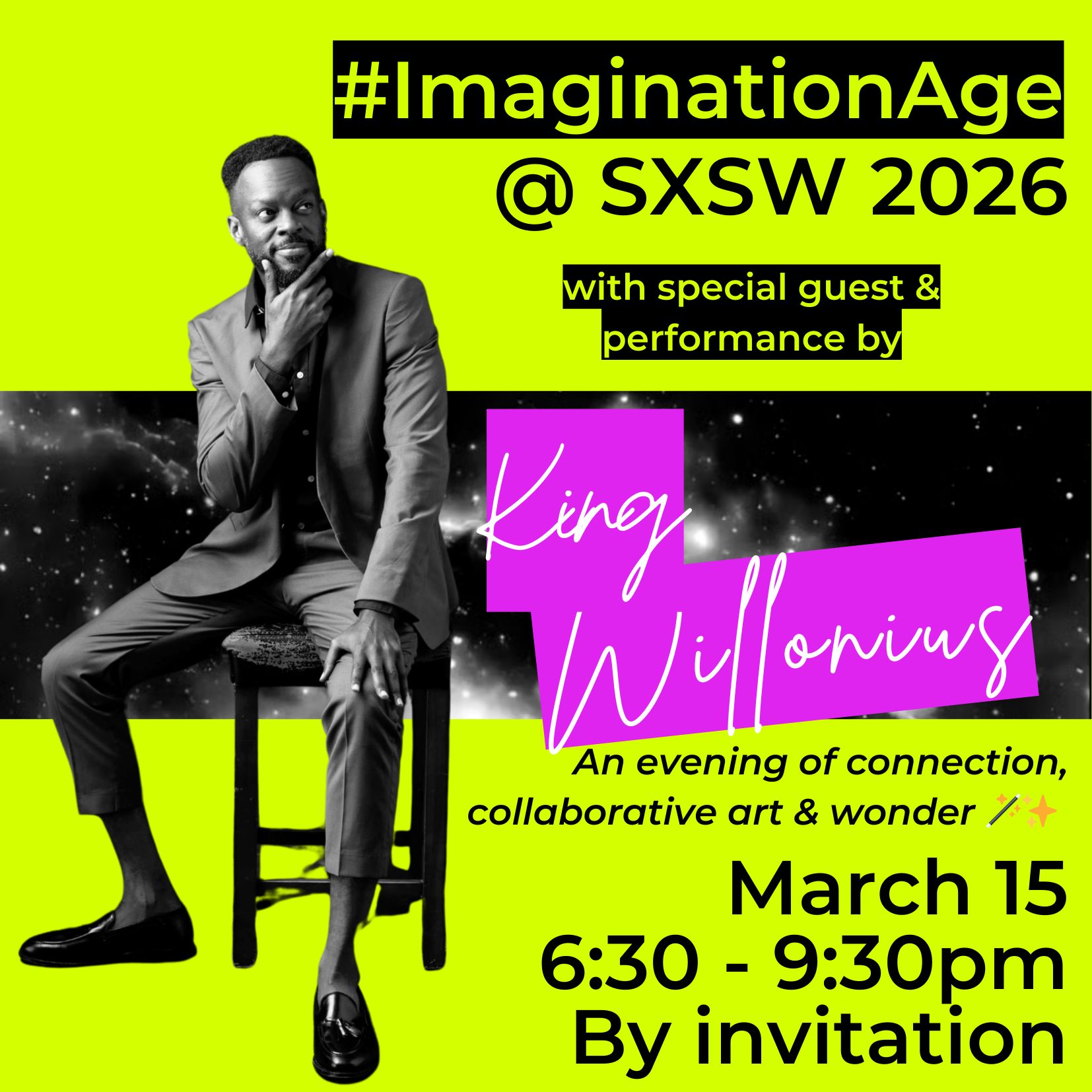 🥳 #Imagination Age @ SXSW with King Willonius — Sunday, March 15 from 6:30-9:30pm